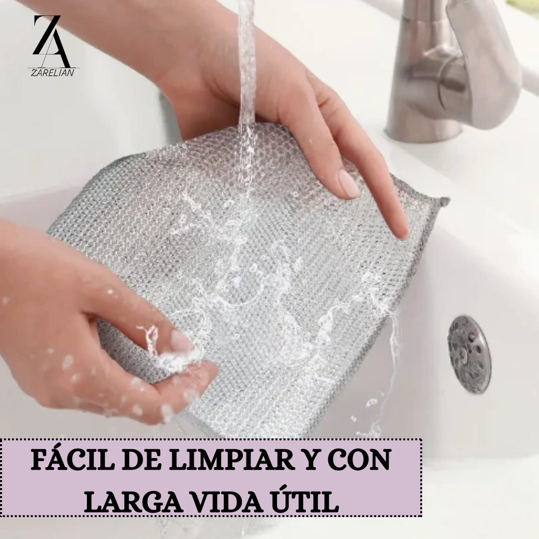 Olvídate de la preocupación de rayar tus ollas, sartenes... gracias al diseño en malla de alambre, nuestros Trapos Multiusos- CleanMaster™ profundizarán en los recipientes y eliminarán las manchas más difíciles SIN RAYAR ninguna superficie ni dañar tus manos.
